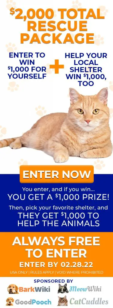 Enter the giveaway to win $1,000 for yourself and another $1,000 for your favorite animal shelter.