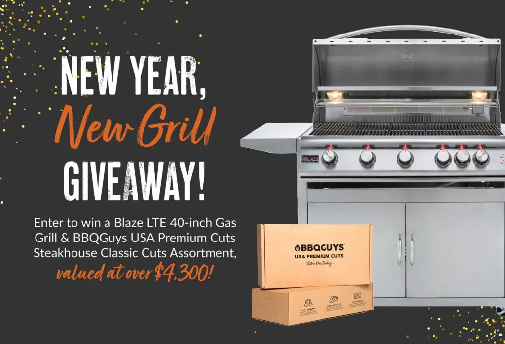 The BBQ Guys New Year New Grill Sweepstakes is offering you a chance to win a Blaze Gas Grill (40 Inches) and some filet, ribeye and more