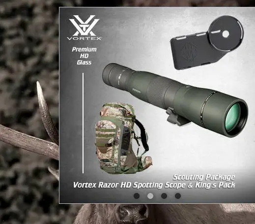 Win $3,000 in hunting gear! Includes Vortex Razor HD Spotting Scope, King's 2200 Backpack, King's XKG Layering System, Camp Chef Oven and Stove, and Oakley Sunglasses.