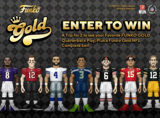 Also included is a complete set of Funko Gold NFL figures, flight tickets, 2-night hotel stay, and 2 tickets to a game of your choice.