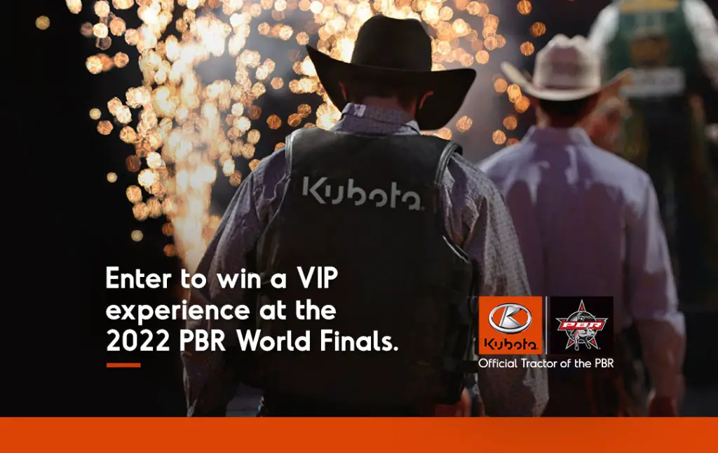 Enter the Kubota PBR World Final Sweepstakes and you could be the lucky winner of a trip to Fort Worth, Texas for the PBR World Finals