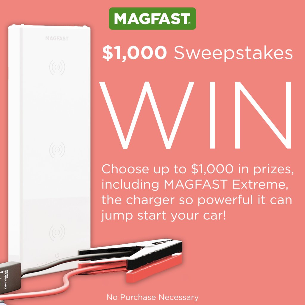 The MAGFAST $1000 Sweepstakes is offering you a chance to win $1,000 worth of prizes including a MAGFAST extreme charger, iPhone, Apple Watch and more.