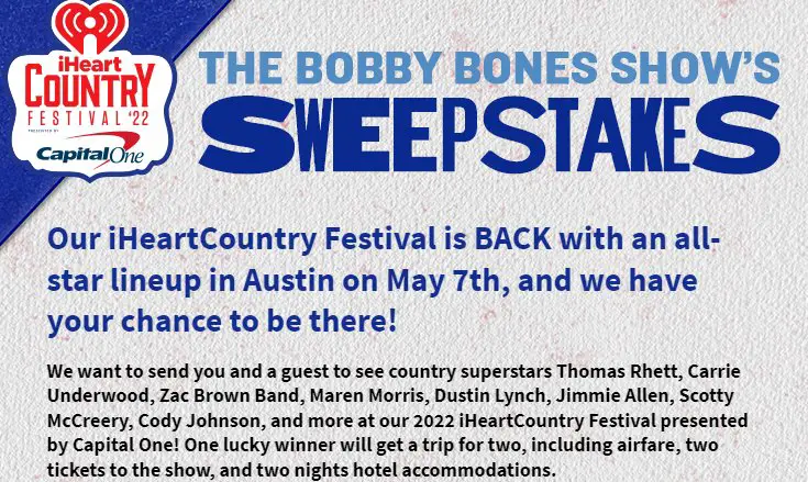 Win A Trip For 2 People To Austin For The iHeartCountry Festival - The Bobby Bones Show