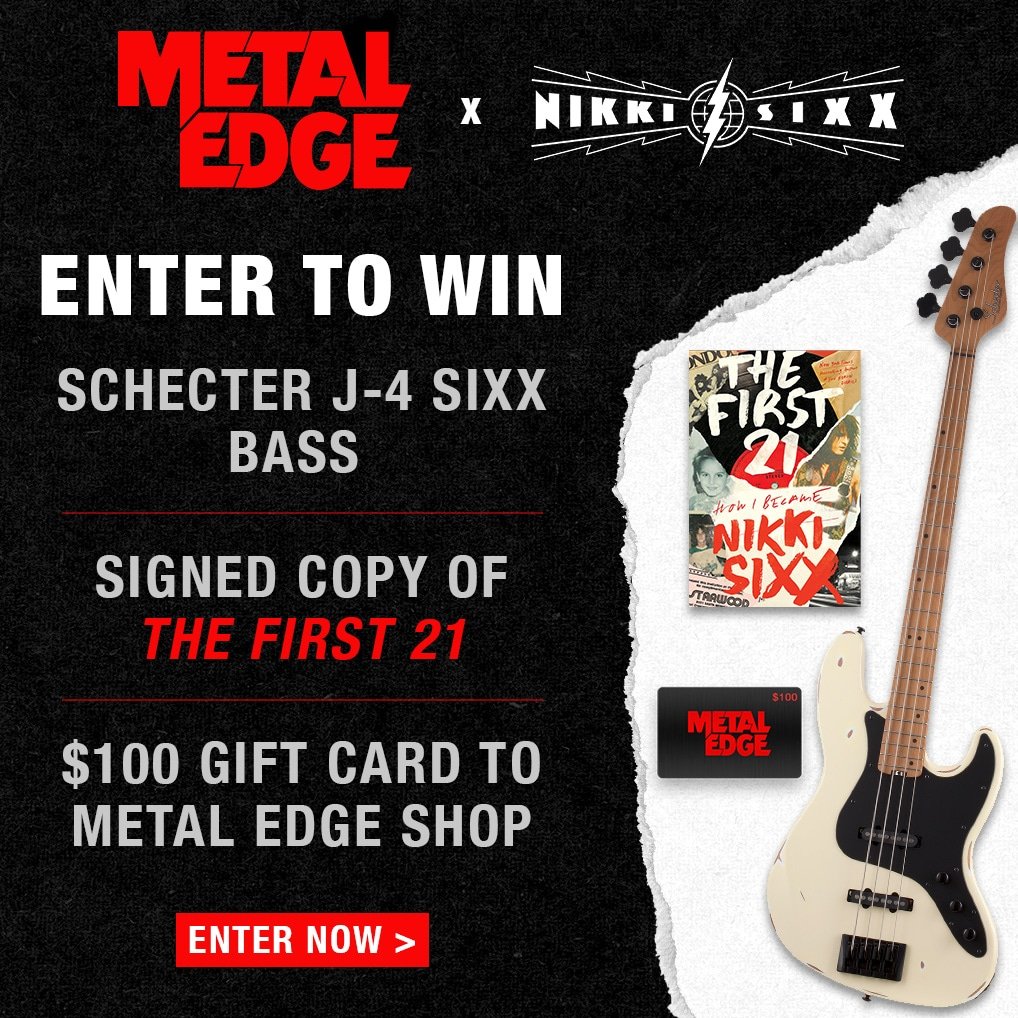 The Metal Edge Nikki Sixx 'The First 21' Bass Bundle Giveaway is offering you a chance to win a Bass Guitar, A copy of Nikki Sixx's book - The First 21 (autographed by Nikki Sixx) and $100 Metal Edge Gift Card.
