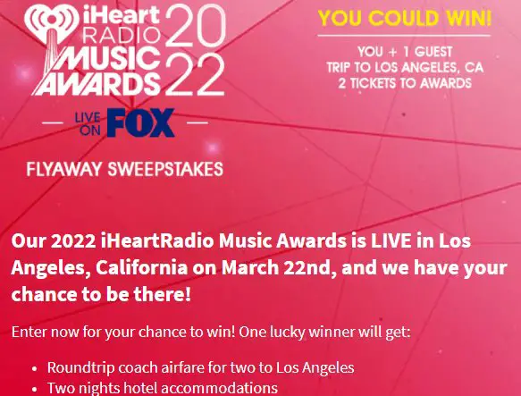 A Trip For 2 To The 2022 iHeartRadio Music Awards In Los AngelesEntry Form