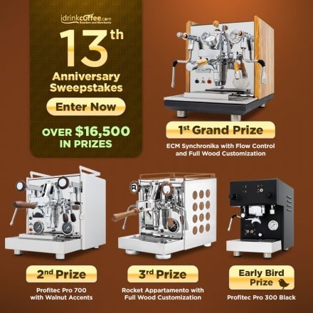 Win 1 Of 4 Espresso Machines In The iDrinkCoffee.com 13th Anniversary Sweepstakes - iDrinkCoffee.com