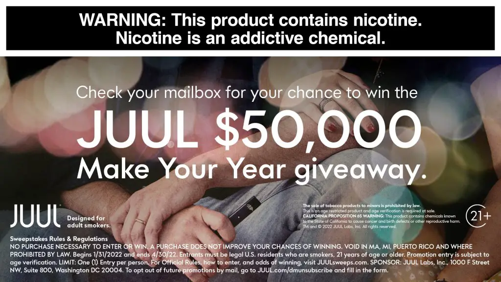 Juul Make Your Year Sweepstakes is offering smokers an opportunity to win $50,000