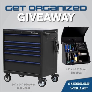 The Montezuma Get Organized Sweepstake is offering you a chance to win a tool cabinet (6-Drawer Montezuma cabinet) plus a steel shopbox.