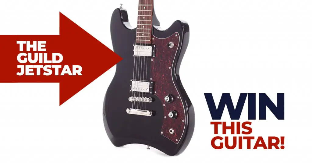 The electric guitar to be won is the Guild Jetstar.
