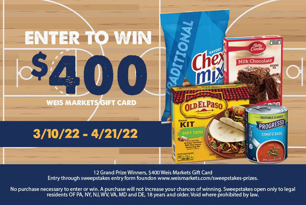 $400 Weis Market Gift Card - 12 WinnersEntry Form