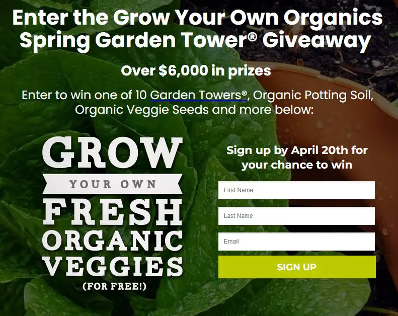 The Grow Your Own Organics Giveaway is offering you a chance to win a Garden Tower package that includes the self contained system of 50+ plants called Garden Tower 2, some Organic Potting Soil and a Culinary Seed Collection.