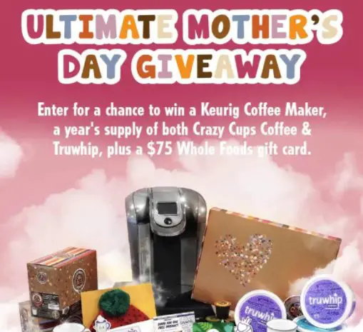 Enter the Crazy Cups & Truwhip Sweepstakes for a chance to win a Keurig machine + 1-Year Supply Of Crazy Cups Coffee and Truwhip