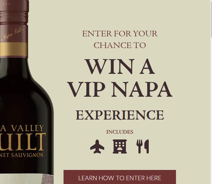 Enter the Quilt Wines VIP Napa Experience Sweepstakes for a chance to win a trip to Napa, California for a VIP Experience.