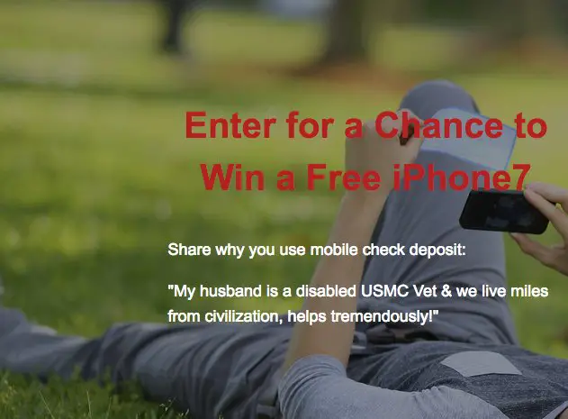 1 of 2 iPhone 7 phones, worth $649 are up for grabs. Tell them why you love depositing your checks from anywhere and you'll be entered to win!
