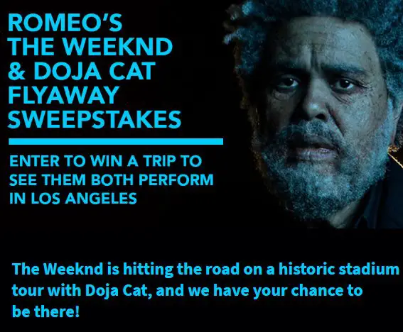 Enter the Romeo’s The Weeknd and Doja Cat Flyaway Sweepstakes and you could be the lucky winner.