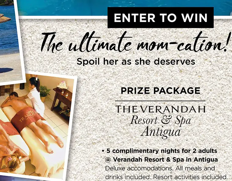 Enter the Mother Of All Getaways Giveaway for a chance to win an all-expense paid trip for 2 to the Verandah Resort & Spa in Antigua.