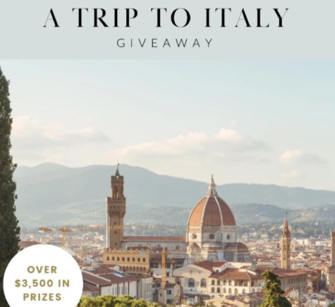 $3,500 Trip To Italy For 2Includes $2,300 travel voucher, $699 Voucher For Airfare, Gift Cards and more.