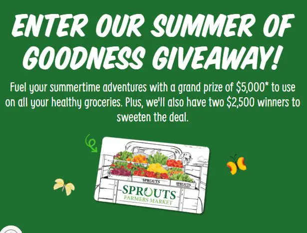 You can win a $5,000 Gift Card in the Sprouts Farmers Market Summer Sweepstakes.
