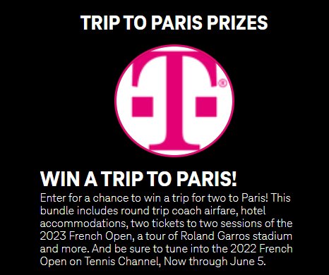T-Mobile Tuesdays Sweepstakes - Win A Trip For Two People To The 2023 French Open In Paris - T-Mobile Top