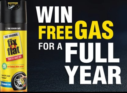 free Gas for a year + 6 cans of Fix-Flat tire inflatorsEntry Form