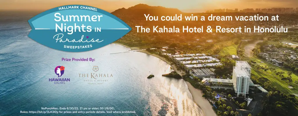 Enter the Hallmark Channel Summer Nights Sweepstakes for a chance to win a trip for 2 to the Kahala Hotel and Resort in Hawaii for a 4-night stay.