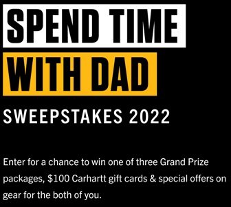 Also up for grabs are ten $100 gift certificate from Carhartt awarded daily until Father's Day.