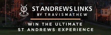 1 Winner: A Trip for 2 to St. Andrews, Scotland with 3 Nights Hotel Accommodation, Air Transportation, $1,000 Discount at the TravisMathew St Andrews Store and 2 Rounds of Golf at St. Andrews Links.Entry Form
