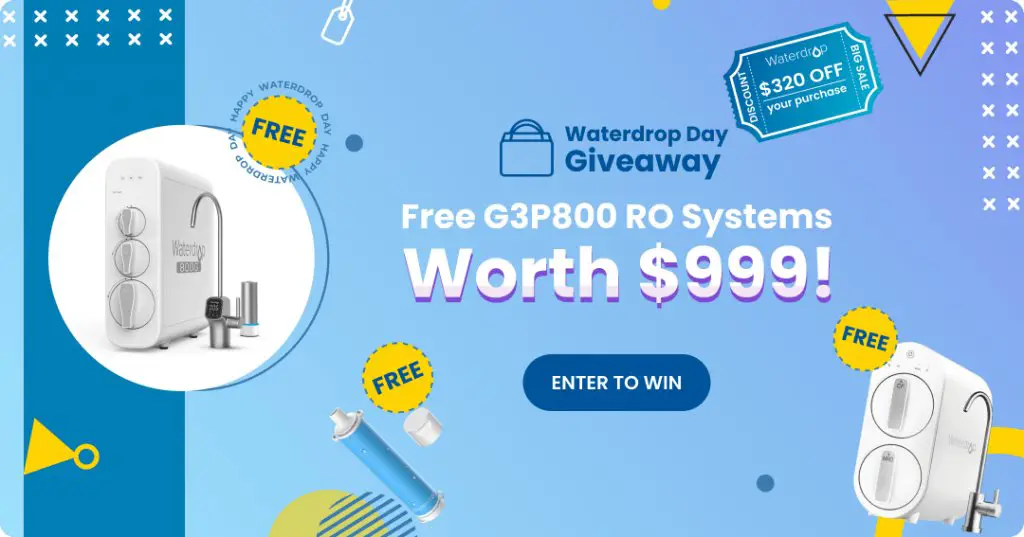 Enter the Waterdrop Day Giveaway for a chance to win a $1,000 water filtration system - the G3P800 RO System.