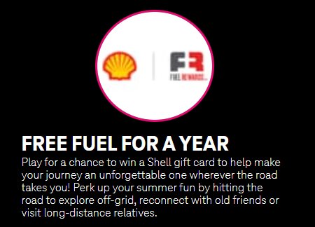 If you miss out on the Grand Prize, there will be 5 winners of $1,000 Shell Gift Cards.