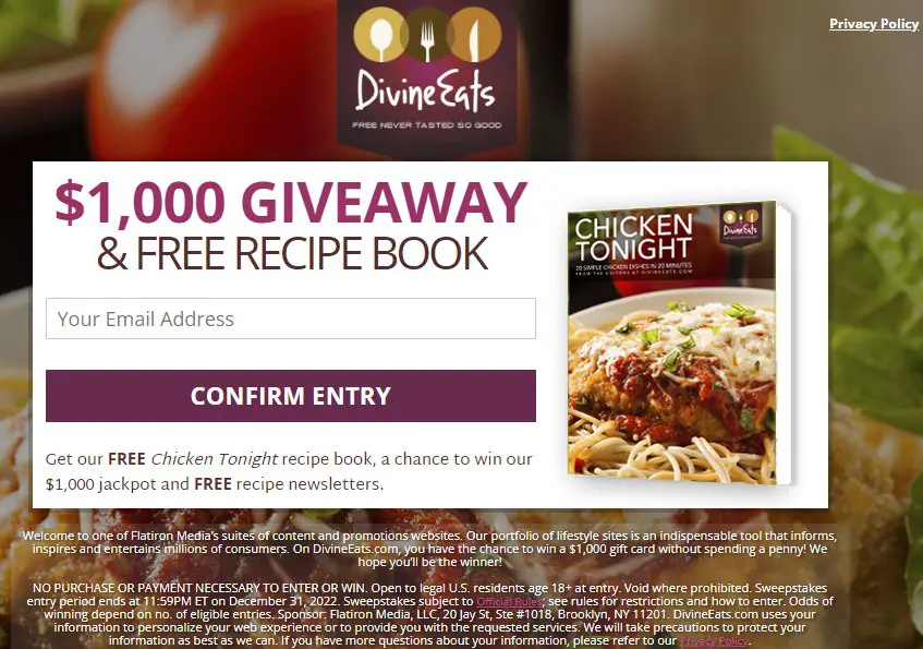 $1,000 Divine Eats Gift CardEntry Form