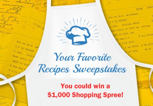 Enter the Your Favorite Recipes Sweepstakes for a chance to win a $1,000 Williams Sonoma Gift Card For A Shopping Spree.