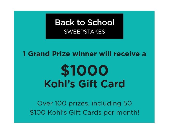 Take part in the latest Kohl's Back to School sweepstakes for a chance to win gift cards good for shopping at Kohl's. Enjoy considerable savings up to $1,000 through these gift cards!