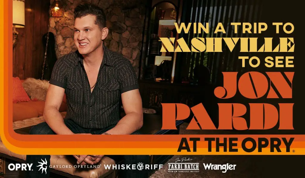 Enter the Grand Ole Opry's Jon Pardi Flyaway for a chance to win a free trip for 2 people to Nashville for a Jon Pardi concert.