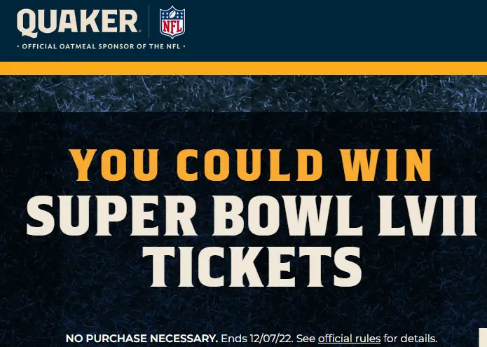 Quaker Superfan Superbowl LVII Tickets Sweepstakes & Instant Win - Win A $13,150 Trip For 2 To The Super Bowl - Quaker Top