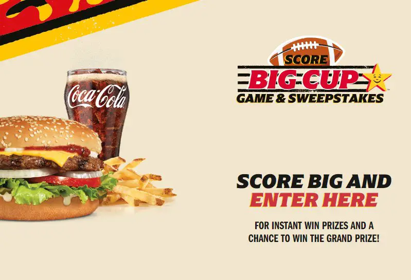 Carl Jr & Hardee's Score Big Cup Sweepstakes & Instant Win Game - Win A Trip To Atlanta/Pasadena Or Over 300,000 Prizes - Hardee’s Top