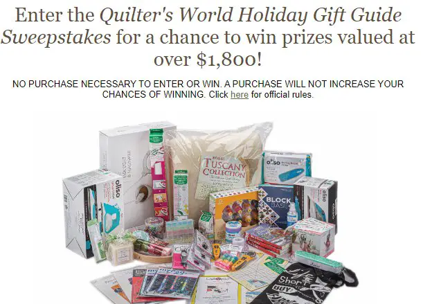 Enter the Quilter's World Holiday Gift Guide Sweepstakes for a chance to win a $1,800 quilting supplies prize package.