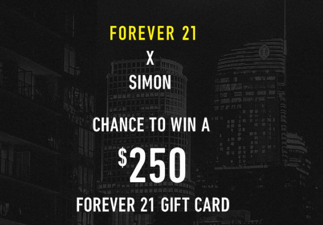 FOREVER 21 & Simon Sweepstakes - Win 1 of 5 $250 FOREVER 21 Gift Cards - Simon Management Associates II, LLC