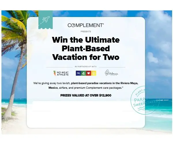 Plant-Based Paradise Vacation Sweepstakes - Win A Vacation Package For 2 - Complement