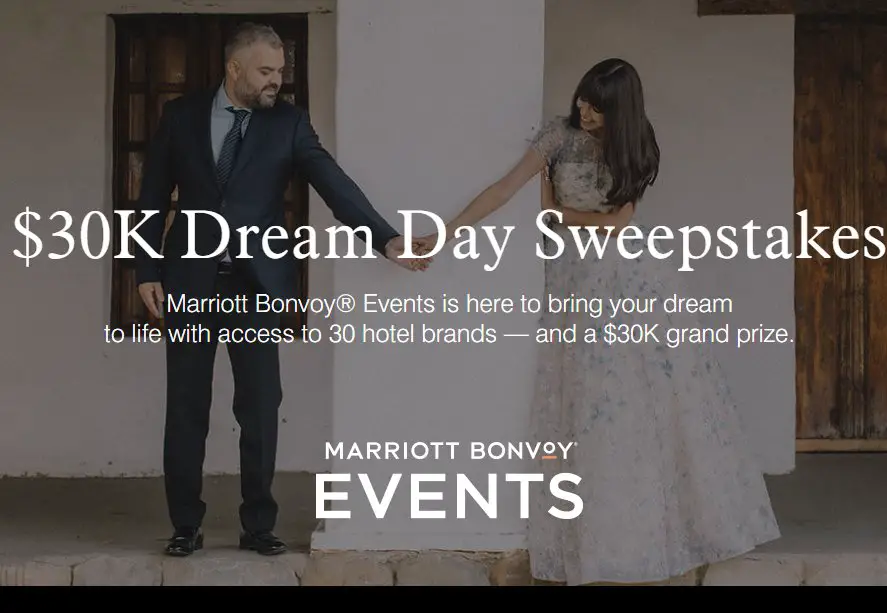 The Marriot $30K Dream Day Sweepstakes is offering you a chance to win a $30,000 wedding + honeymoon package.