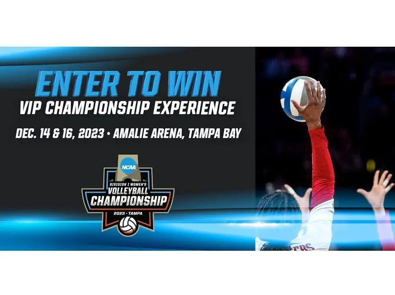 1 Winner: 2 Tickets to 2023 NCAA Volleyball Championship with Fan Experience Passes, 500 Gift Card for Hotel & Travel and Two Tickets to the Following: Busch Gardens Tampa Bay, ZooTampa at Lowry Park and Florida AquariumEntry Form