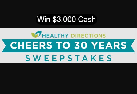 Healthy Directions Cheers To 30 Years Sweepstakes - Win $3,000 Cash - Healthy Directions