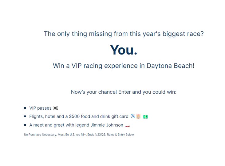 For your effort, you could be selected to win the grand prize of a $4,500 trip to attend the 2023 Daytona 500 Automobile Race.