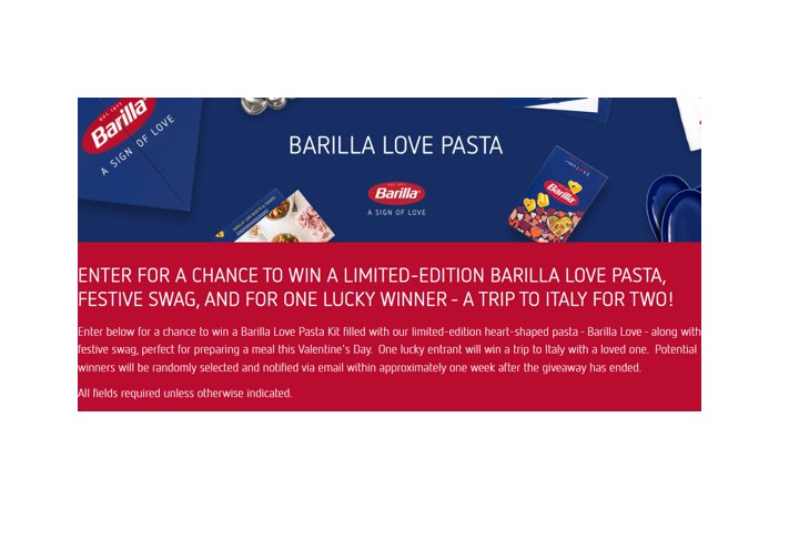 Barilla America The Barilla Love Giveaway - Win A Trip for 2 to Italy & More - Barilla America, Inc.