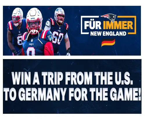1 Grand Prize Winner -Tickets To The 2023 New England Patriots Game In Germany.