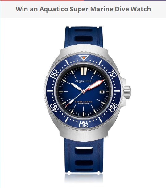 1 Grand Prize Winner -Will Receive 1 Aquatico Super Marine Automatic Dive Watch valued at $459.