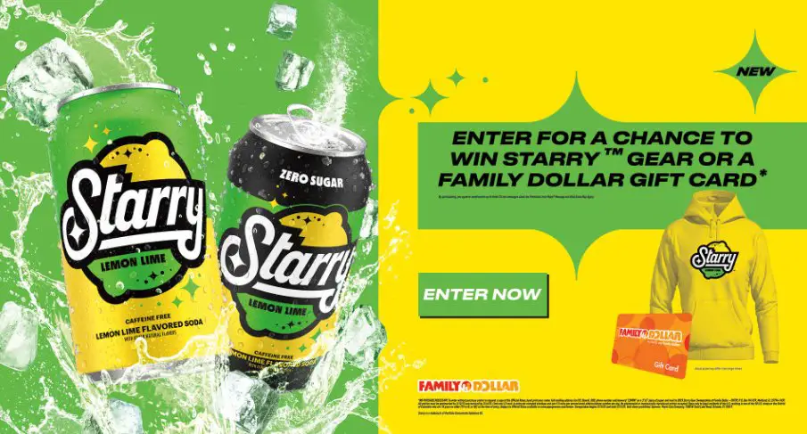 Aside from the grand prize winner, 10 more winners will receive a $50 Family Dollar Store gift card with a Starry gift pack and 35 more will receive a $25 Family Dollar Store gift card with a Starry gift pack.
