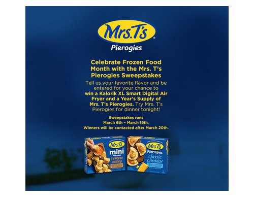 IHeartRadio Celebrate Frozen Food Month With Mrs. T’s Pierogies Sweepstakes