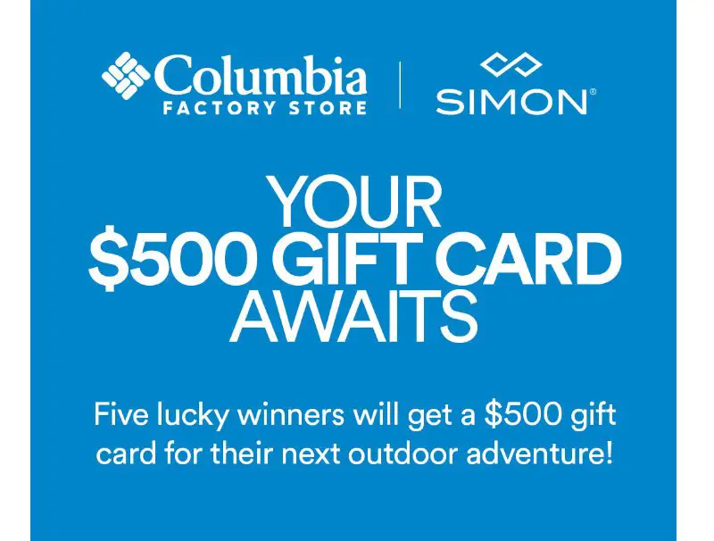 Check out the latest sweepstakes from Simon Management Associates for a chance to win a $500 Columbia Sportswear gift card! Five winners will be selected to receive this gift card that can be used to shop for the latest and best sports gear.