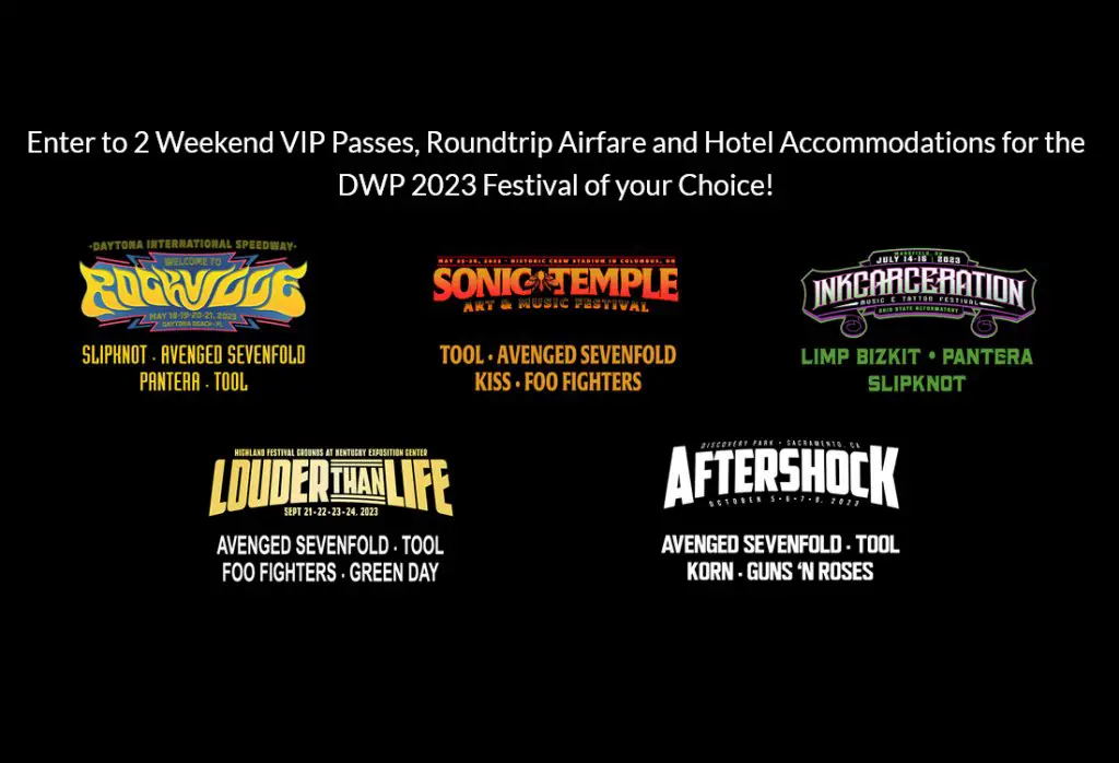 Loudwire X DWP 2023 Flyaway All Inclusive Sweepstakes - Win A $4,500 Trip For Two To Any DWP Concert - Loudwire