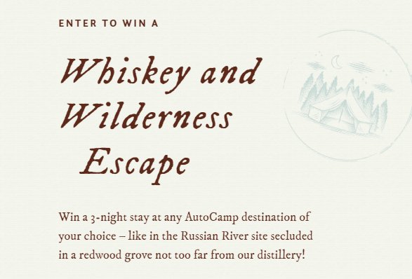 Win a free glamping trip worth $4,500 courtesy of the Redwood Empire Whiskey & Wilderness Escape Sweepstakes!